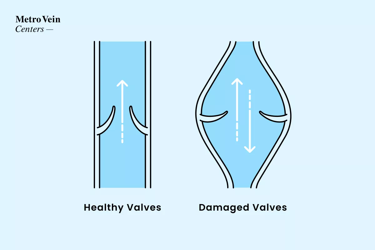 When you have vein disease (also known as “chronic venous insufficiency”), the valves in your veins are not working properly and struggle to pump blood back to the heart, causing blood to pool in the veins and protrude into varicose veins. This results in less circulation in your body and can lead to symptoms such as aching legs, heaviness, cramping legs, and more.